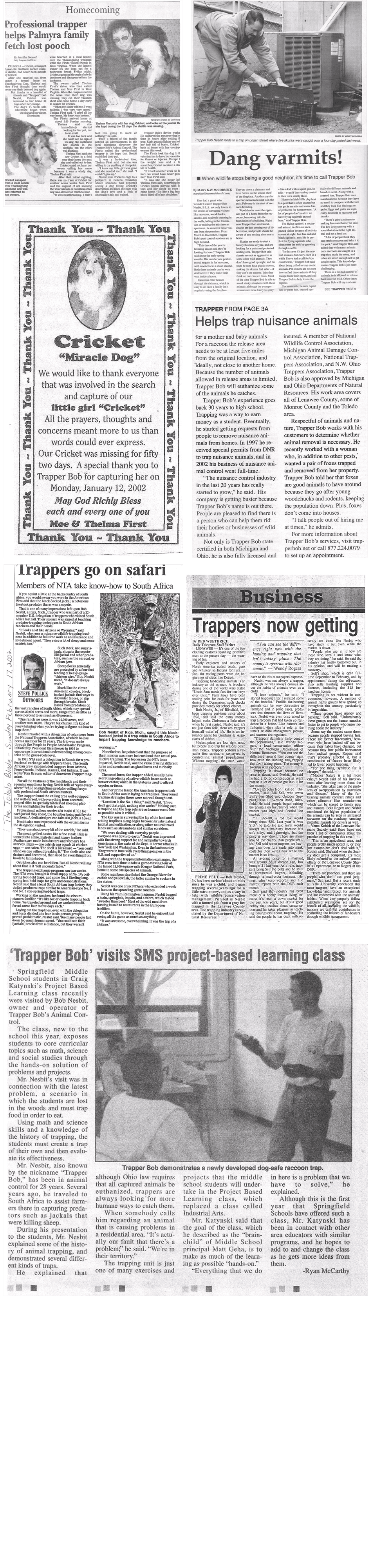 Bob Nesbit Palmyra, MI 49268 Email: trapper_bob1@hotmail.com Phone: (517)265-8450 Toll Free: (877) 224-0079